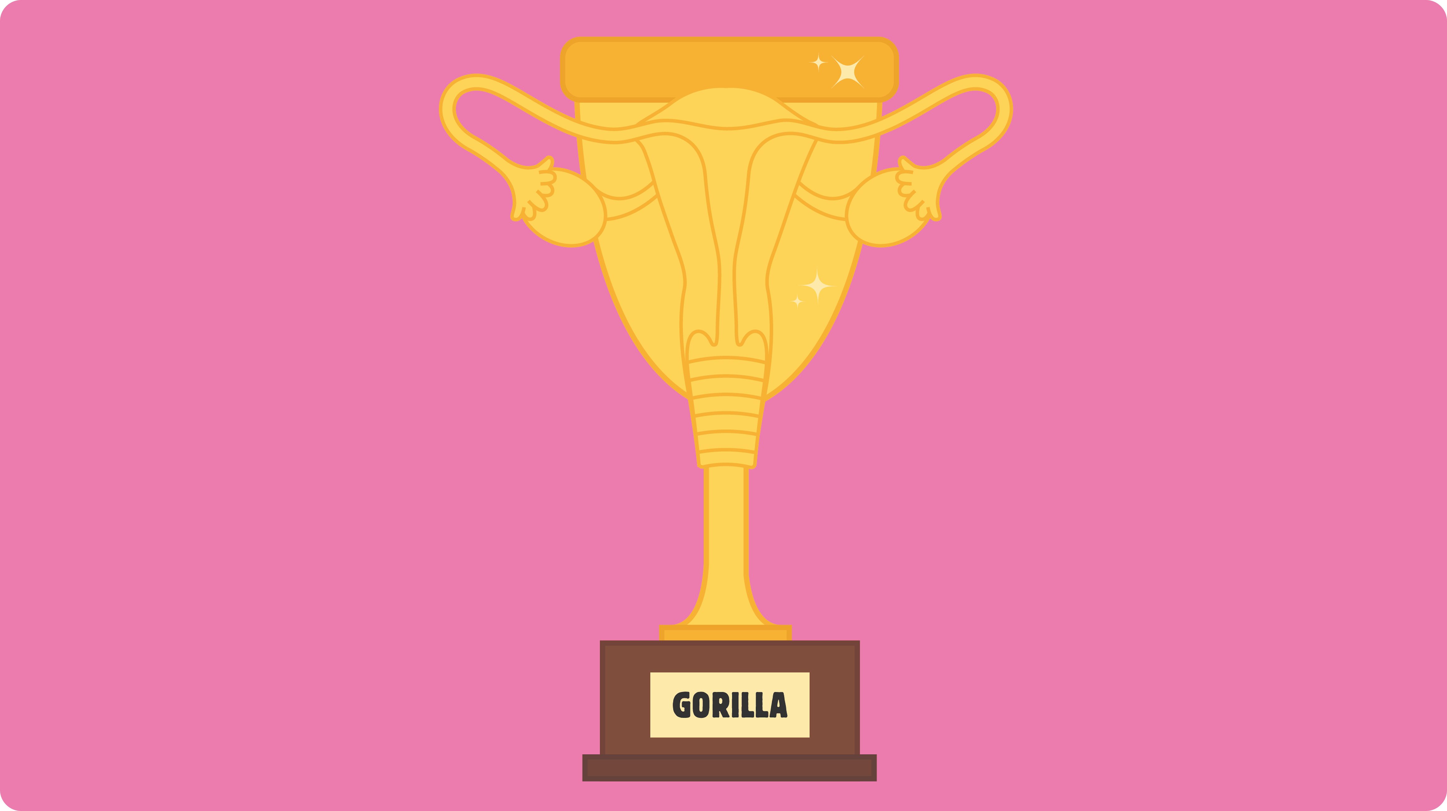 De vrouw wilde ik niet letterlijk verbeelden, dus koos ik ervoor om dit te doen met een baarmoeder en eileiders, dit is namelijk hetgeen wat (in de meeste gevallen) alleen een vrouw heeft. De prijs wilde ik wel letterlijk verbeelden, dit aan de hand van een troffee.