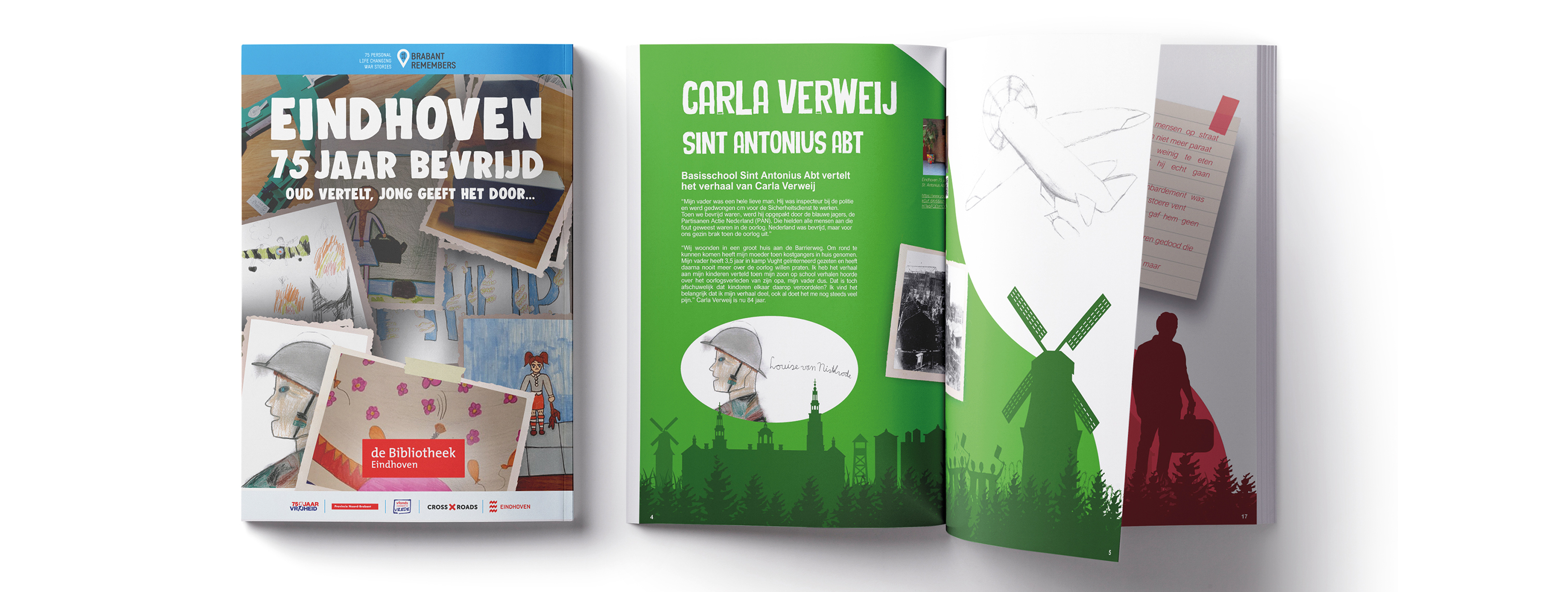 Op 18 september 2019 is het precies 75 jaar geleden dat Eindhoven werd bevrijd. De persoonlijke verhalen over de herinneringen aan de oorlog kunnen straks niet meer worden verteld en moeten daarom nu worden verzameld. Om deze reden initieerde de Bibliotheek het project “Eindhoven 75 jaar bevrijd: Oud vertelt, jong geeft door.” Het unieke aan dit project is dat kinderen van het basisonderwijs in samenwerking met studenten Sociaal werk van het Summa College de verhalen hebben opgehaald en vastgelegd. De kinderen gingen zelf aan de slag met het formuleren van de vragen en hierdoor werd hun nieuwsgierigheid geprikkeld en hun interesse gewekt voor dit onderwerp. De verhalen zijn verwerkt op een wijze waar de kinderen zich prettig bij voelden. Dit kan een verhaal, een tekening, een filmpje of zelfs een dans zijn. De vormgeving van het magazine is verzorgd door studenten van het SiNTLUCAS in Eindhoven.